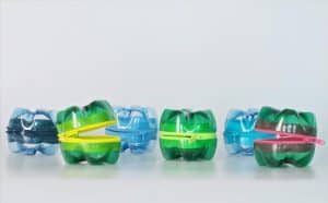 - Najpierw odcinamy doły butelek. Można do tego użyć noża do chleba, piłki do metalu. Nierówne krawędzie wyrównujemy nożyczkami.
