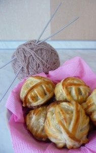 Z mięsa uformuj małą kulkę i oklej ją paskami ciasta francuskiego. Staraj się robić to tak aby wyglądały jak kłębki wełny.